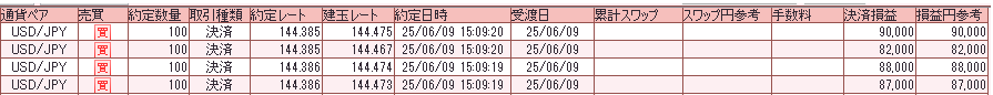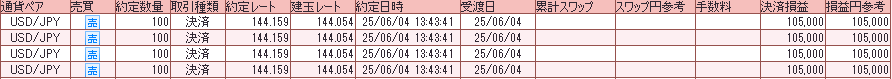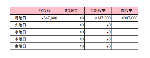 FX 4戦 4勝 0敗 +¥347,000円 +34.7pips