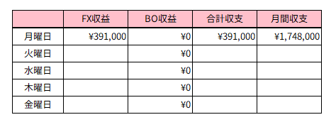 FX 4戦 4勝 0敗 +¥391,000+39.1pips